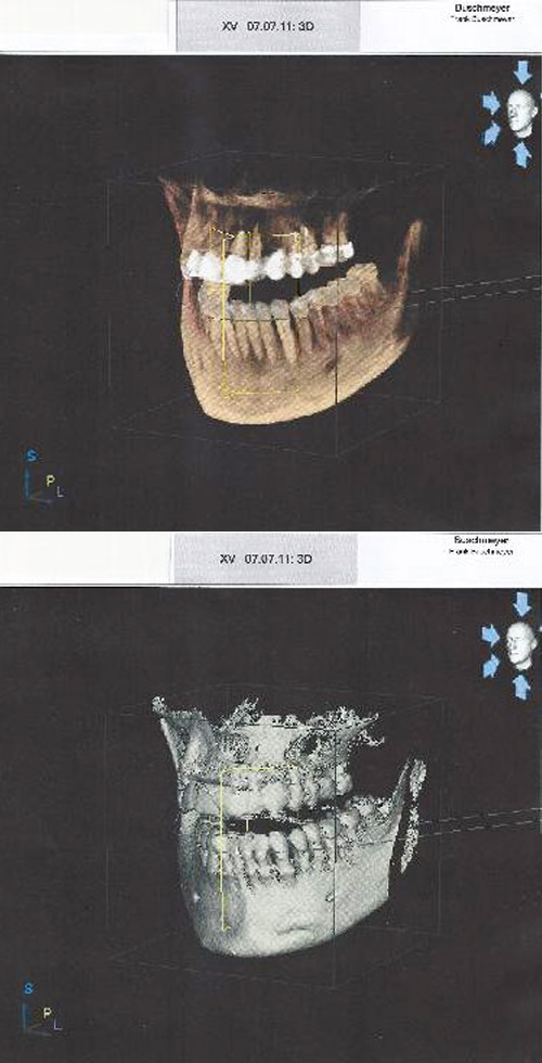 Seit vielen Jahren arbeiten wir ausschließlich mit digitalen Röntgensystemen. Seit einigen Jahren benutzen wir in unserer Praxis die Möglichkeit des dreidimensionalen Röntgens. Dies ermöglicht uns deutlich bessere und umfangreichere Röntgendiagnostik, ähnlich einem Computertomogramm, nur mit weniger Strahlenbelastung. Auf diese Weise können wir beispielsweise eine deutlich bessere Implantatplanung bieten. Auf den digitalen Schnittbildern lässt sich der Kieferknochen genau beurteilen und somit die Implantatplanung sicherer und risikoärmer durchführen.